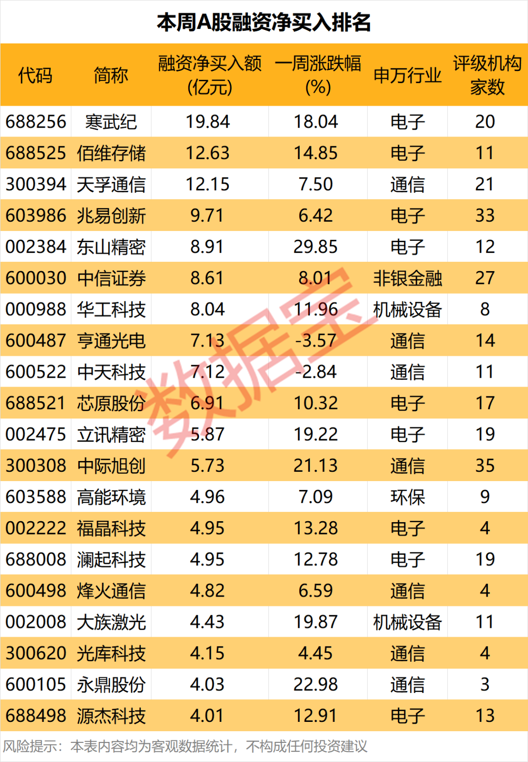 本周多只芯片股获融资资金加仓,算力芯片龙头寒武纪及存储芯片龙头佰维存储获净买入前二。