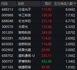 Wind实时监测数据显示,CPO概念近来持续获得主力资金净流入,近5个交易日获得逾255亿元净流入。仕佳光子等11股早间均获得超1亿元净流入。