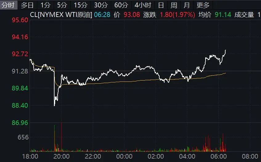 国际原油价格盘中拉升,早盘一度跌超3%。截至发稿,WTI原油期货价格涨近2%,布伦特原油期货价格也涨近2%。