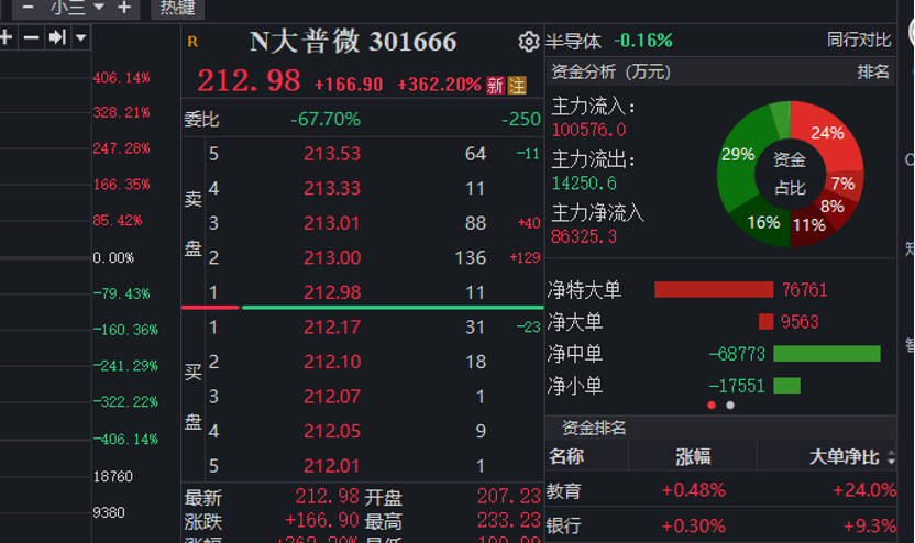 从市场表现看,N大普微-UW开盘涨近350%。据悉,该公司是创业板第三套上市标准启用后,首家成功上市的未盈利企业。N埃泰克开盘涨112%,N恒道开盘涨83.49%。