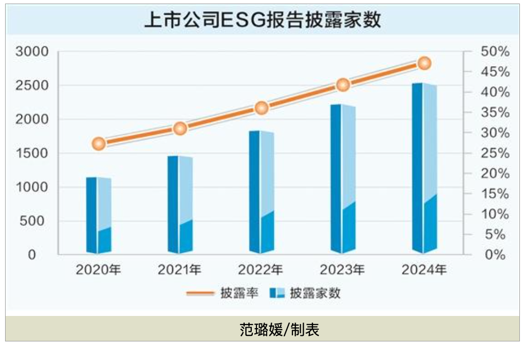 政策驱动下,A股ESG披露率持续攀升,2024年达47%。截至2026年4月15日,已有近1000家公司完成2025年ESG报告披露,强制披露“首考”有序推进。