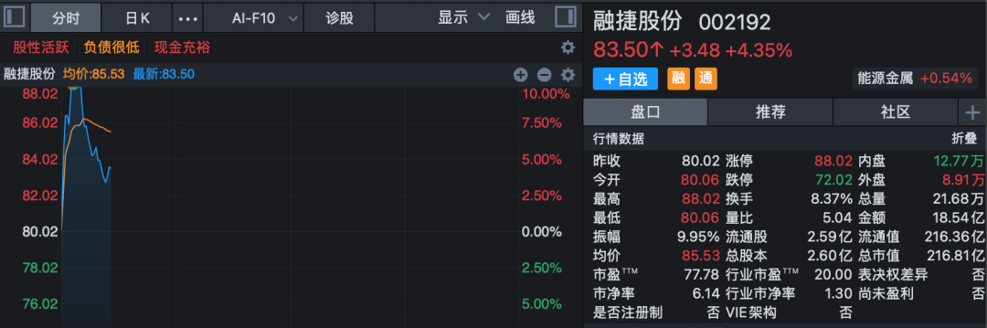 锂矿概念反复活跃,融捷股份一度触及涨停,天齐锂业、天华新能、盐湖股份、国城矿业、盛新锂能跟涨。
