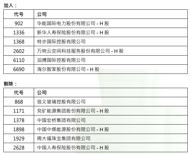 恒生中国高股息率指数年度指数检讨结果公布
