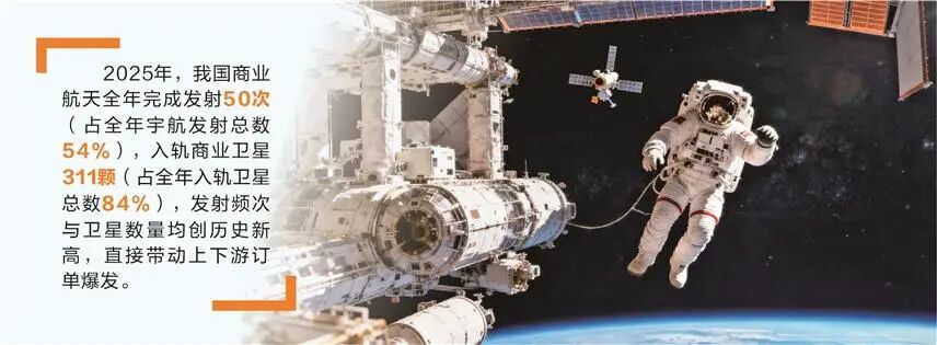 从政策层面来看,商业航天连续两年写入政府工作报告。国家航天局印发的《推进商业航天高质量安全发展行动计划(2025—2027年)》明确,重点围绕先进航天推进技术、先进卫星平台与载荷技术、通导遥一体化应用等前沿领域,“鼓励商业航天主体积极参与民用航天工程、国家重大专项等研制建设”。