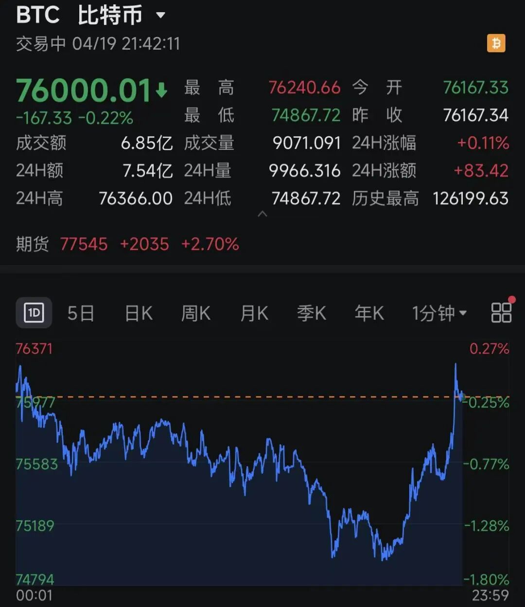 在周末开盘的比特币受特朗普发文影响直线拉升,在盘中跌超1%的情况下一度翻红。