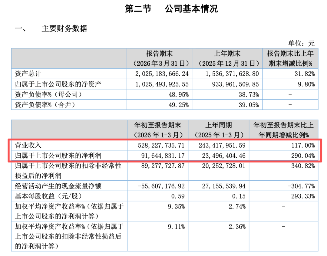 报告显示,聚星科技今年一季度实现营收5.28亿元,同比增长117%;归母净利润为9164万元,同比增长290%;扣非后净利润为8928万元,同比增长340.82%。