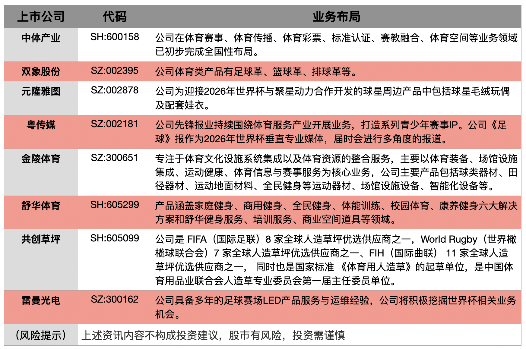 中银证券认为,若后续地方联赛上座率、品牌赞助、票务销售及文旅消费联动继续强化,足球主题有望从单点情绪交易进一步演变为体育消费链条的阶段性主线。建议围绕三条主线进行跟踪。 一是赛事运营及体育器材主线,二是赛事场景配套及运动消费主线,三是传播与流量变现主线。