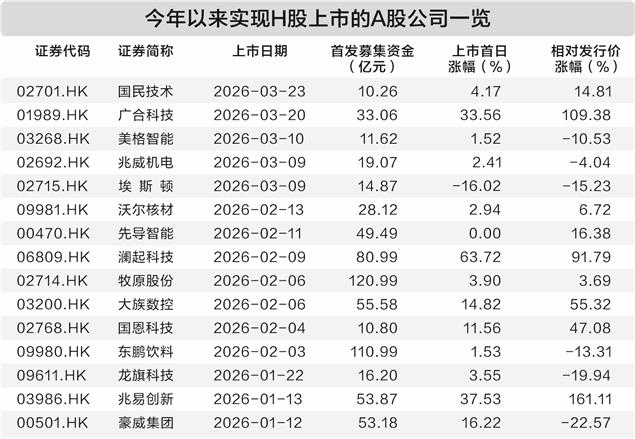 2026年一季度港股上市的40家企业中,15家为先A后H的公司,澜起科技、大族数控、兆易创新、豪威集团、广合科技5家更是跻身一季度港股IPO募资前十行列。