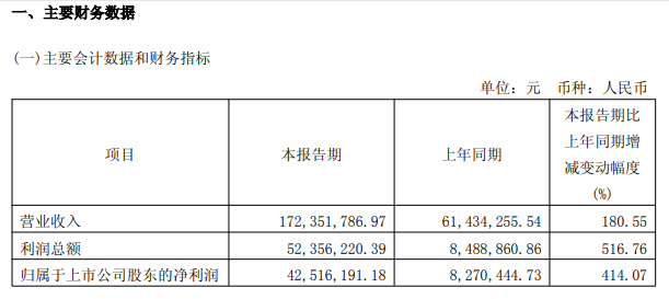 恒誉环保(688309)4月21日晚间公告,2026年第一季度公司实现营业收入1.72亿元,同比增长180.55%,归母净利润4251.62万元,同比增长414.07%,扣非净利润4233.68万元,同比增长446%。对于业绩大幅增长的原因,上市公司表示主要系在手订单较去年同期增加。