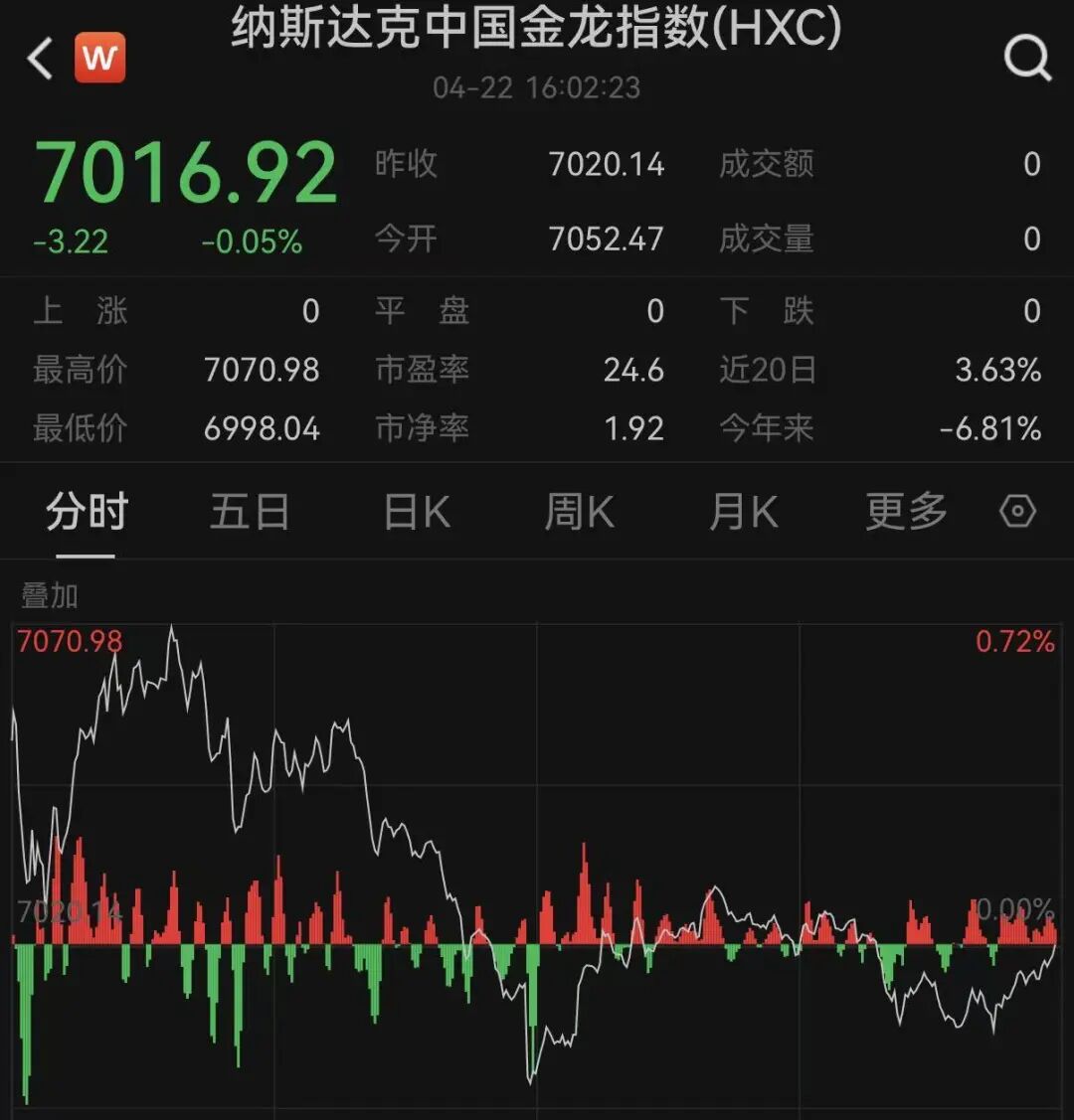 中概股涨跌不一,纳斯达克中国金龙指数跌0.05%。个股方面,大全新能源涨超16%,晶科能源涨近11%,阿特斯太阳能涨超9%,亚朵涨逾5%,老虎证券涨超2%。