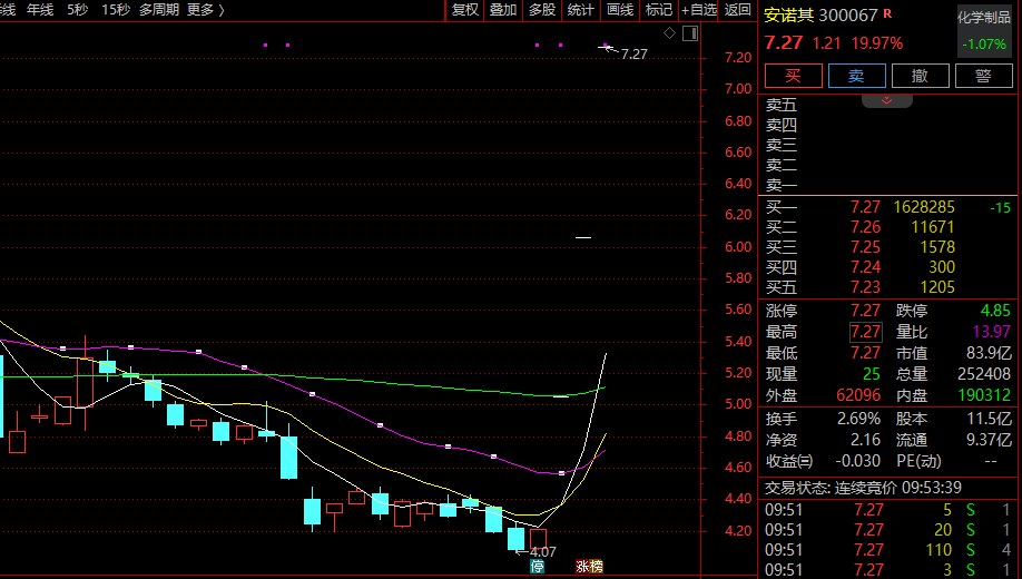 算力租赁概念拉升,安诺其20cm涨停,走出3连板,超160万手买单封死。旗天科技20cm涨停,浙文互联、佳华科技、利通电子等跟涨。