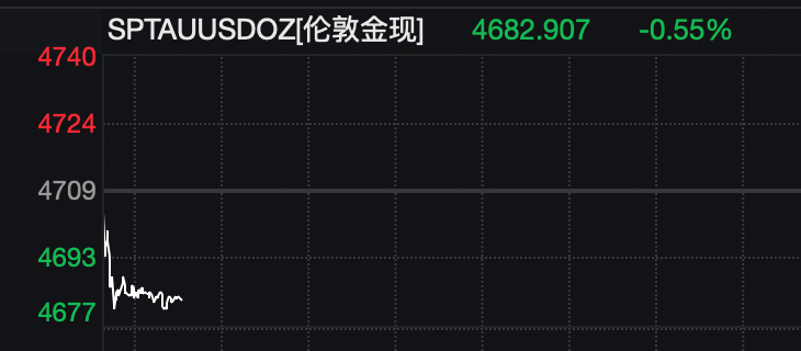 4月27日,黄金、白银双双低开。截至发稿,国际现货黄金、现货白银跌幅分别为0.55%、0.84%,分别报4682.907美元/盎司、75.023美元/盎司。