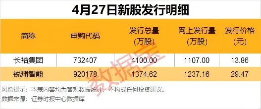 N海昌(920156)今日在北交所上市,开盘价44.12元,开盘上涨110.8%。公司主要从事高性能线束装备研发、生产和销售,致力于为下游的线束制造业提供智能化解决方案及相关配套服务,与天海电子、安波福、比亚迪、立讯精密、莱尼、李尔、长城汽车等众多国内外知名企业建立了长期稳定的合作关系。有2只新股今日可申购,分别为沪市主板的长裕集团,北交所的锐翔智能。长裕集团,申购代码为732407,拟公开发行A股4100万股,其中网上发行1107万股,发行价格为13.86元 ,发行市盈率为23.00倍。公司系行业知名的锆类产品及特种尼龙产品供应商,氧氯化锆产能规模全球最大,特种尼龙产能规模及品种丰富度国内领先。锐翔智能,申购代码为920178,拟公开发行A股1374.62万股,其中网上发行1237.16万股,发行价格为29.47元 ,发行市盈率为14.99倍。公司深耕智能制造装备领域,选择FPC产业链的智能制造装备领域作为发展赛道,是行业内少有能提供FPC多个核心工艺智能制造装备以及整线自动化解决方案的供应商。