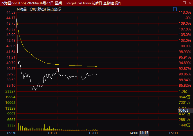 新股海昌智能盘中涨幅超过110%