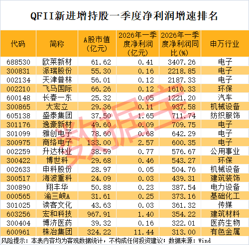 外资机构最新持仓情况浮出水面。