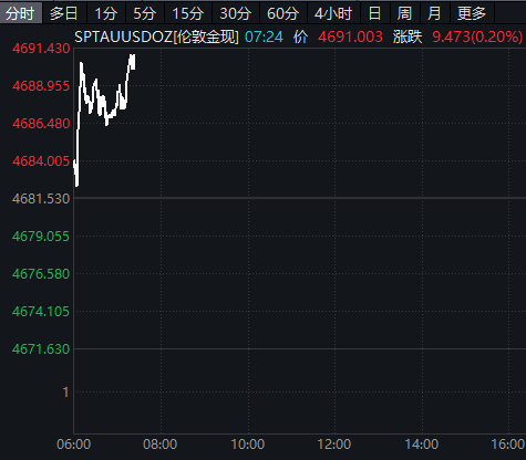 今日开盘后直线拉升,截至发稿,现货黄金、现货白银均小幅上涨。