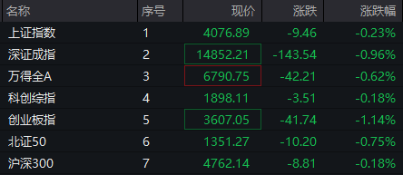 4月28日,A股三大指数集体低开。截至发稿,沪指飘绿,深证成指跌近1%,创业板指跌超1%。