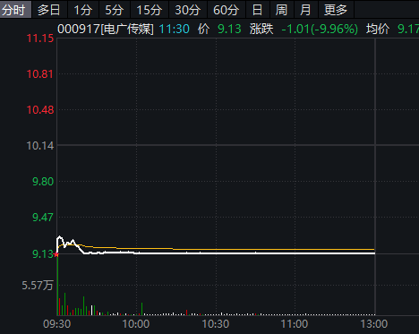 电广传媒今日披露2026年一季报,实现营业收入10.77亿元,同比增长16.73%,净利润亏损9265万元,同比由盈转亏。受此影响,电广传媒大幅低开并快速跌停。