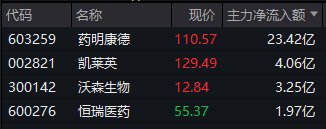 Wind实时监测数据显示,截至午间收盘,创新药板块获得逾33亿元主力资金净流入,其中,药明康德获得逾23亿元主力资金净流入,凯莱英、沃森生物、恒瑞医药也获得超亿元净流入。