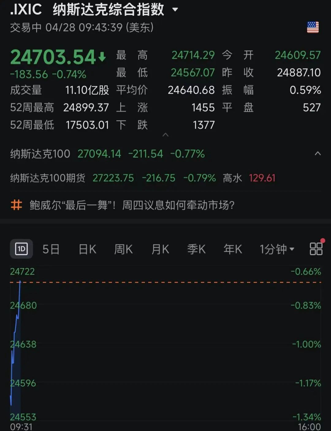美股方面,三大股指走势变化很快,道琼斯指数震荡飘红,纳指与标普500指数大幅低开后跌幅有所收窄。