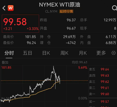 原油方面,WTI原油涨逾3.3%。