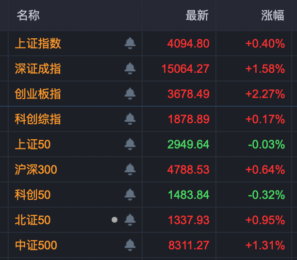 4月29日早盘,A股整体低开高走,深证成指再次冲上15000点,创业板指也收复3600点,上证指数、北证50等也微幅飘红。上涨个股远多于下跌个股,成交呈萎缩趋势。