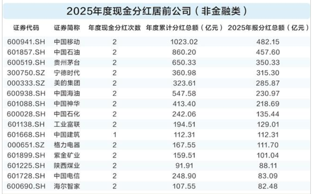 一年多次分红,是2025年财年的一大新趋势,共有超1020家公司在2025年财年实施2次以上分红。