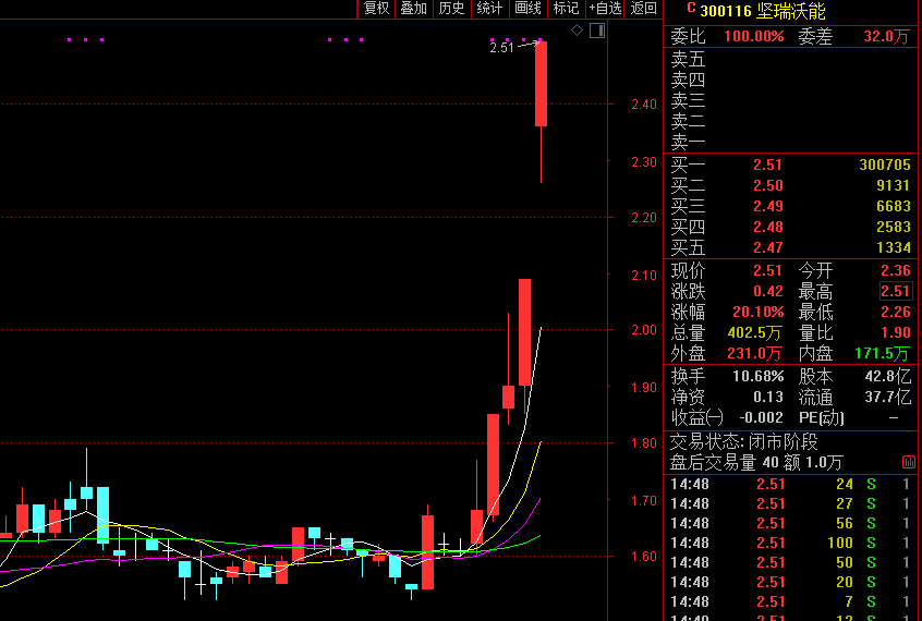 周一也是创业板涨停板放开至20%的首个交易日,坚瑞沃能成为首只盘中触及20%涨停的创业板个股。坚瑞沃能上周已2个涨停,累计上涨29.01%。上周末坚瑞沃能发布股价异动公告称,公司证券简称将由“坚瑞沃能”变更为“保力新”。