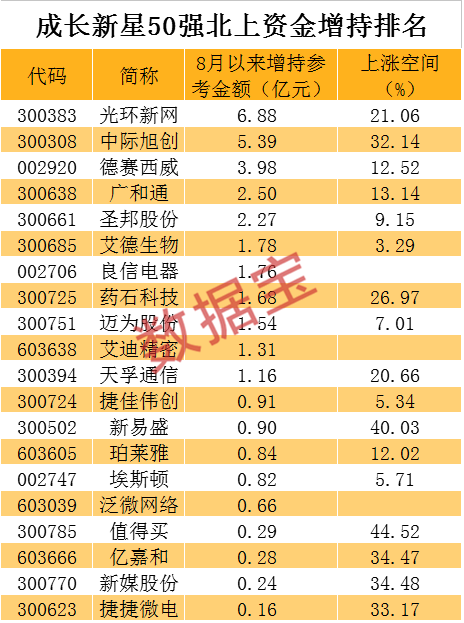 进入8月份以来,部分个股还得到北上资金的大举增持。其中,光环新网8月以来获北上资金增持2620万股,按照8月以来均价计算,增持市值超过6亿元。此外,中际旭创、德赛西威、广和通等个股获北上资金增持超过2亿元。