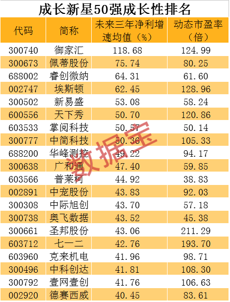 证券时报·数据宝最新发布《A股成长新星50强》榜单,结合上市公司未来成长性,以及所处行业的“新兴度”,揭示A股市场未来成长性较高且处于空间较大的新兴行业的个股,以飨读者。