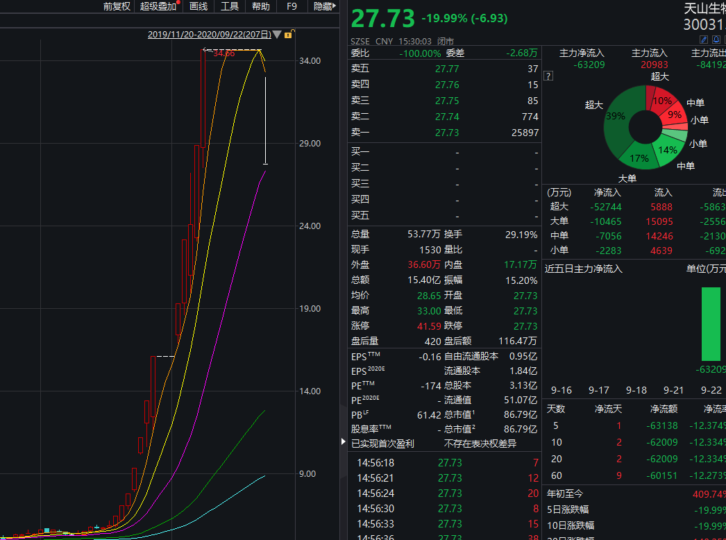 回溯原委,天山生物自8月下旬以来连续暴涨,累计涨幅已经接近5倍,被称为创业板改革后的“第一妖股”。公司在公告中多次提醒投资者“依法合规交易”,期间股票也曾临时停牌核查,但仍旧无法阻止股价暴涨,复牌后继续扶摇直上。