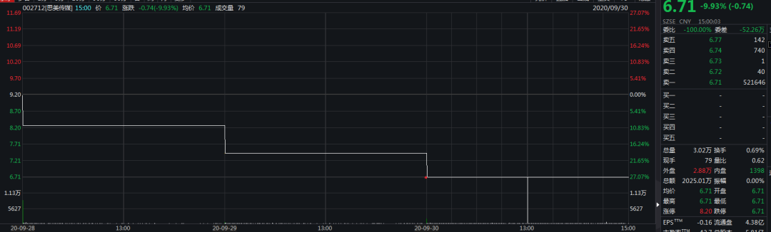 9月30日早盘,被称为“民营广告第一股”的思美传媒开盘即跌9.93%报6.71元,近60万手资金封上跌停板。