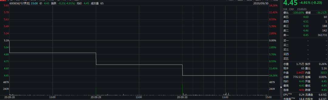 除思美传媒和国城矿业外,*ST界龙早盘延续跌停态势,封单37万手,这也是该公司连续第三个交易日一字跌停。截至收盘,*ST界龙报4.45元/股,最新市值29.49亿元。*ST界龙正在从地产及包装印刷向智慧医疗产业转型,目前还未有明确的资产注入计划。