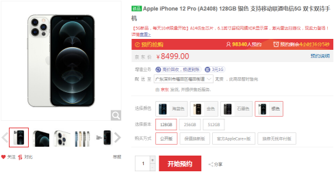苹果iPhone 12 Pro需加价1400元,官方起售价8499元
