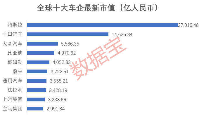 当前在全球市值排名前十的车企中,中国公司已占到3席。其中比亚迪排名第4、蔚来排名第6、上汽集团排名第9。