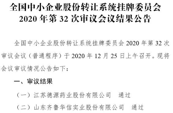 12月25日,申请精选层挂牌的两家公司双双成功“通关”。作为一家年度盈利超过4000万元的医药制造企业,德源药业去年底一度计划冲击创业板IPO。