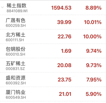 稀土永磁领涨,广晟有色、北方稀土等多股涨停。