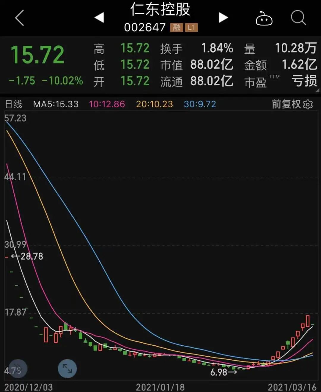 因股价异常波动,停牌近一周的仁东控股今日复牌,开盘股价跌停,跌停板封单20.1万手,约合资金3.2亿元。截至午间收盘,仁东控股跌停板封单加到67.2万手,约合资金10.6亿元。