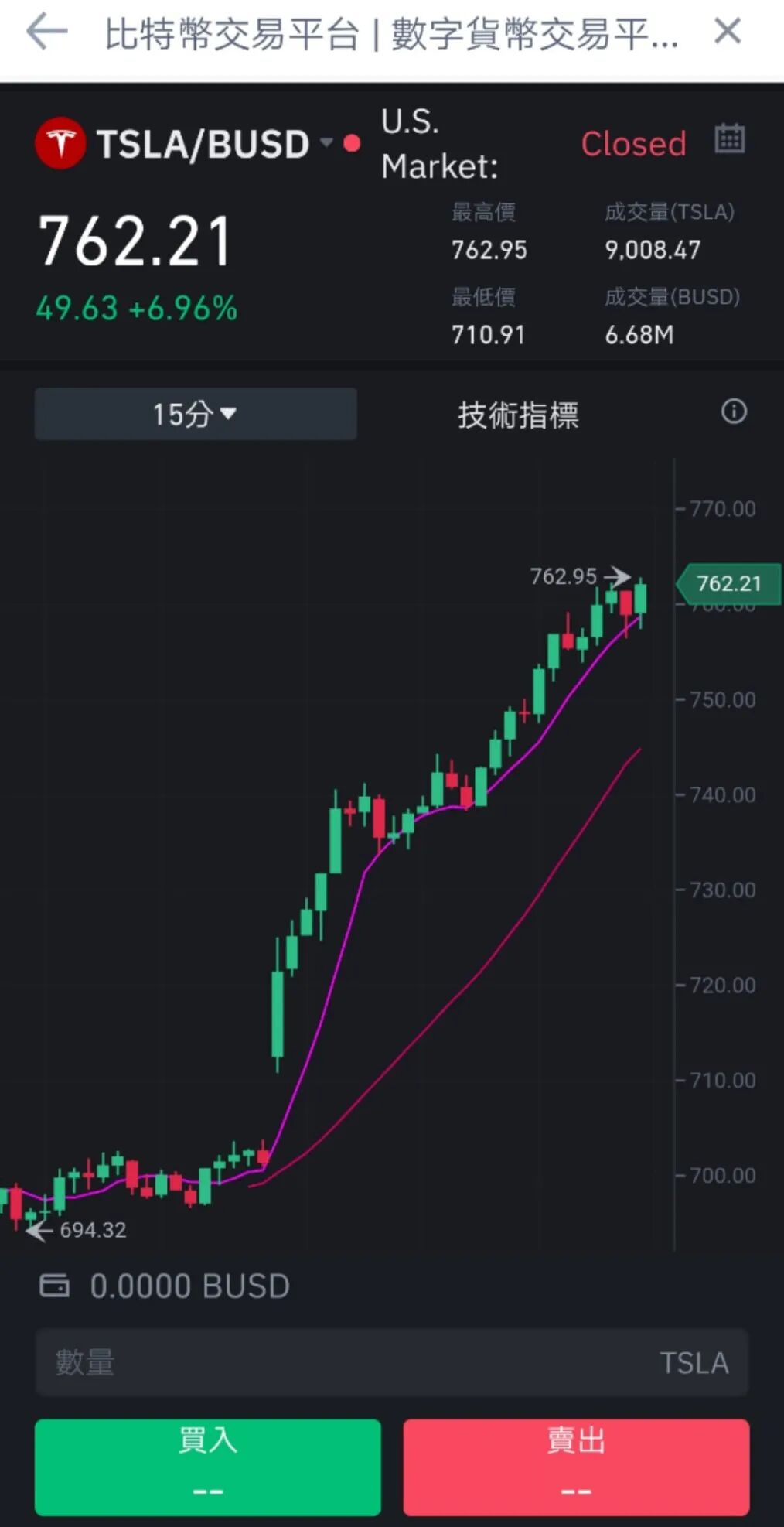 根据官方发布的信息,币安上的特斯拉股票代币的最小交易规模,是买卖股票代币的百分之一,币安上的每个特斯拉股权代币代表特斯拉股票的一股,按照特斯拉在美股760美元的股价,币安的投资者最低可以7.6美元价格买入。