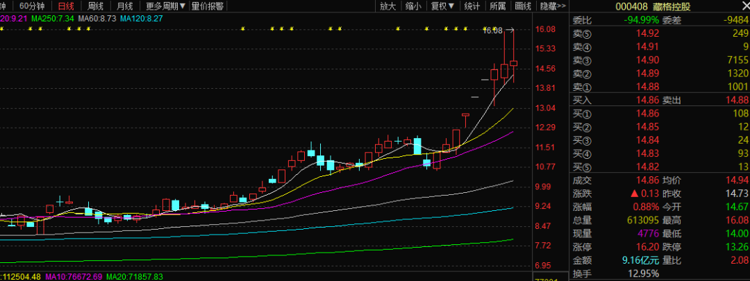 藏格控股实控人的困局和控股股东变更风险并未“拖累”公司股价走势。今年以来,公司股价一路上行,以1月4日开盘价8元/股计算,至5月14日盘中高点16.08元/股,已经翻倍。