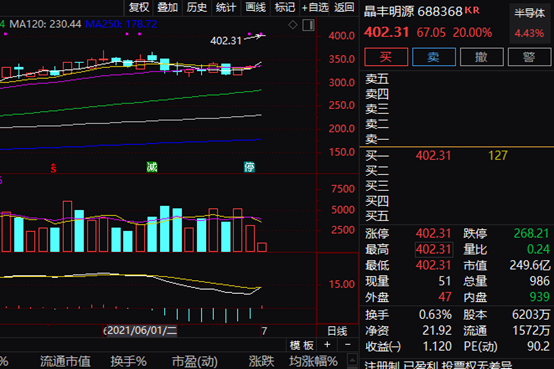 晶丰明源大涨20%封住涨停,该股目前股价超过400元,在2019年四季度,股价尚仅60元出头,不到两年时间股价翻了近7倍。