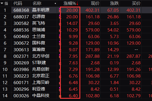 英飞特、思瑞浦、士兰微、国科微、富瀚微、北方华创、兆易创新等多只半导体相关概念股大幅上涨。