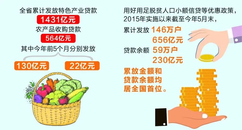 李兴文:这方面我们主要是强化金融资源投入,优化金融服务供给,加快特色产业发展工程贷款和农产品收购贷款投放。截至今年5月末,全省累计发放特色产业贷款1431亿元、农产品收购贷款564亿元,其中今年前5个月分别发放130亿元和22亿元。用好用足脱贫人口小额信贷等优惠政策,2015年实施以来截至今年5月末,累计发放146万户、656亿元,贷款余额59万户、230亿元,累放金额和贷款余额均居全国首位。