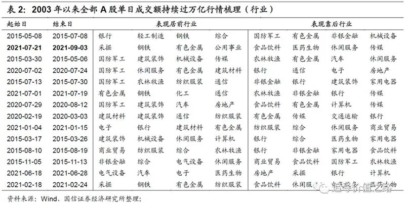 国信证券表示,从各行业历史表现来看,市场成交额持续高于万亿元期间有色金属、化工、电气设备等行业表现较好,而银行、食品饮料、传媒等行业表现相对靠后。