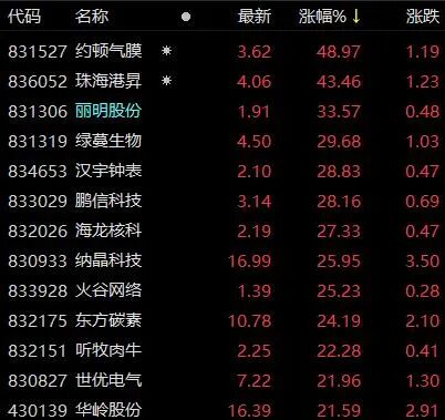 (今日精选层涨幅居前的个股)