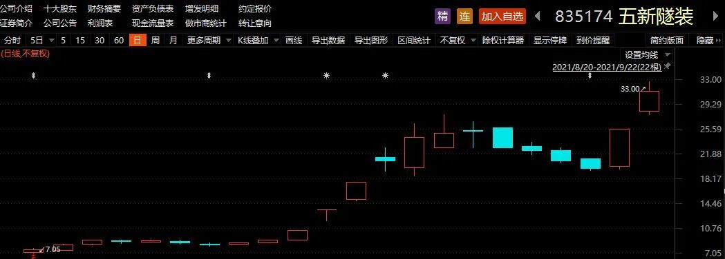 五新隧装盘中一度逼近涨停,因此再度创出历史新高,9月以来该股累计上涨了265.85%,其今日收盘价为31.5元,较发行价7.18元涨幅超过3.3倍。华阳变速股价复权后也刷新了历史记录,9月以来该股累计涨幅为103%。