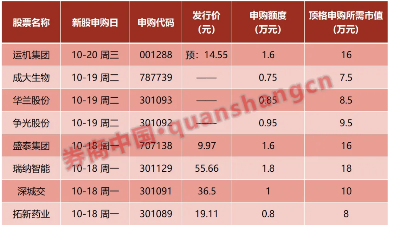 e公司讯,根据新股发行安排,下周沪深两市将有8只新股申购。其中,创业板新股瑞纳智能和科创板新股成大生物值得关注。此外,下周一精选层也将迎来2只新股申购。此外, “大肉签”百普赛斯,将在明天登陆创业板。