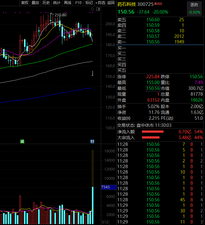 近期A股市场除了受到政策影响较大外,三季报行情也在持续发酵中,业绩向好个股股价普遍向上,反之股价则受到抑制。今天早盘大牛股药石科技开盘20%跌停。