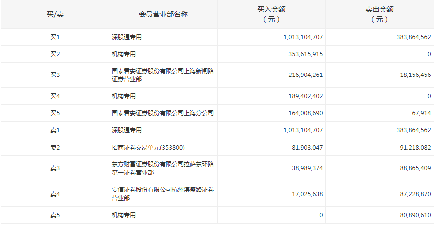e公司讯,天齐锂业今日涨停,盘后数据显示,深股通买入10.13亿元并卖出3.84亿元,两机构合计买入5.43亿元,一机构卖出8089万元。