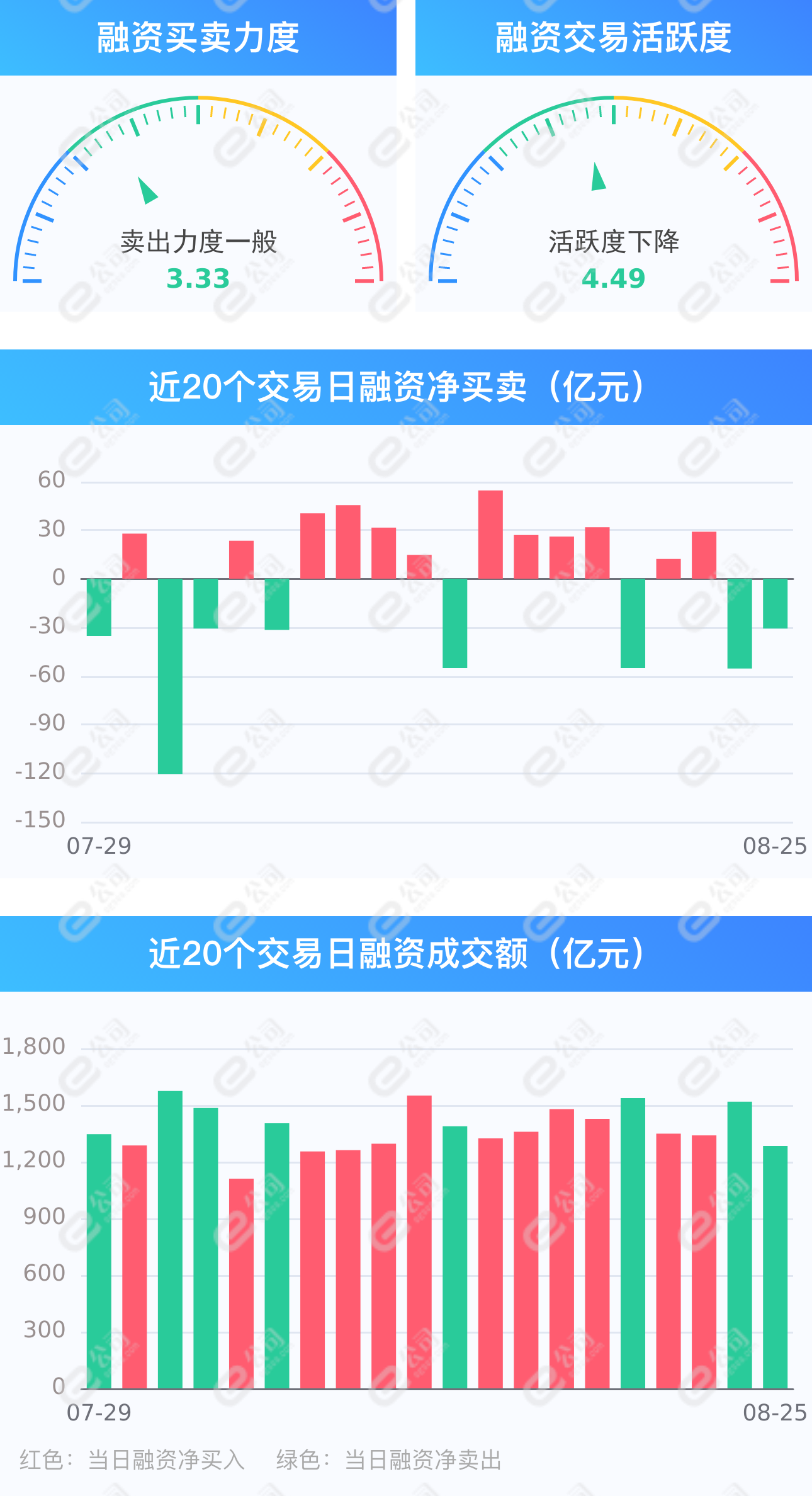 e公司讯,截至8月25日,上交所融资余额报8169.66亿元,较前一交易日减少15.55亿元;深交所融资余额报7093.21亿元,较前一交易日减少15.18亿元;两市合计15262.87亿元,较前一交易日减少30.73亿元。